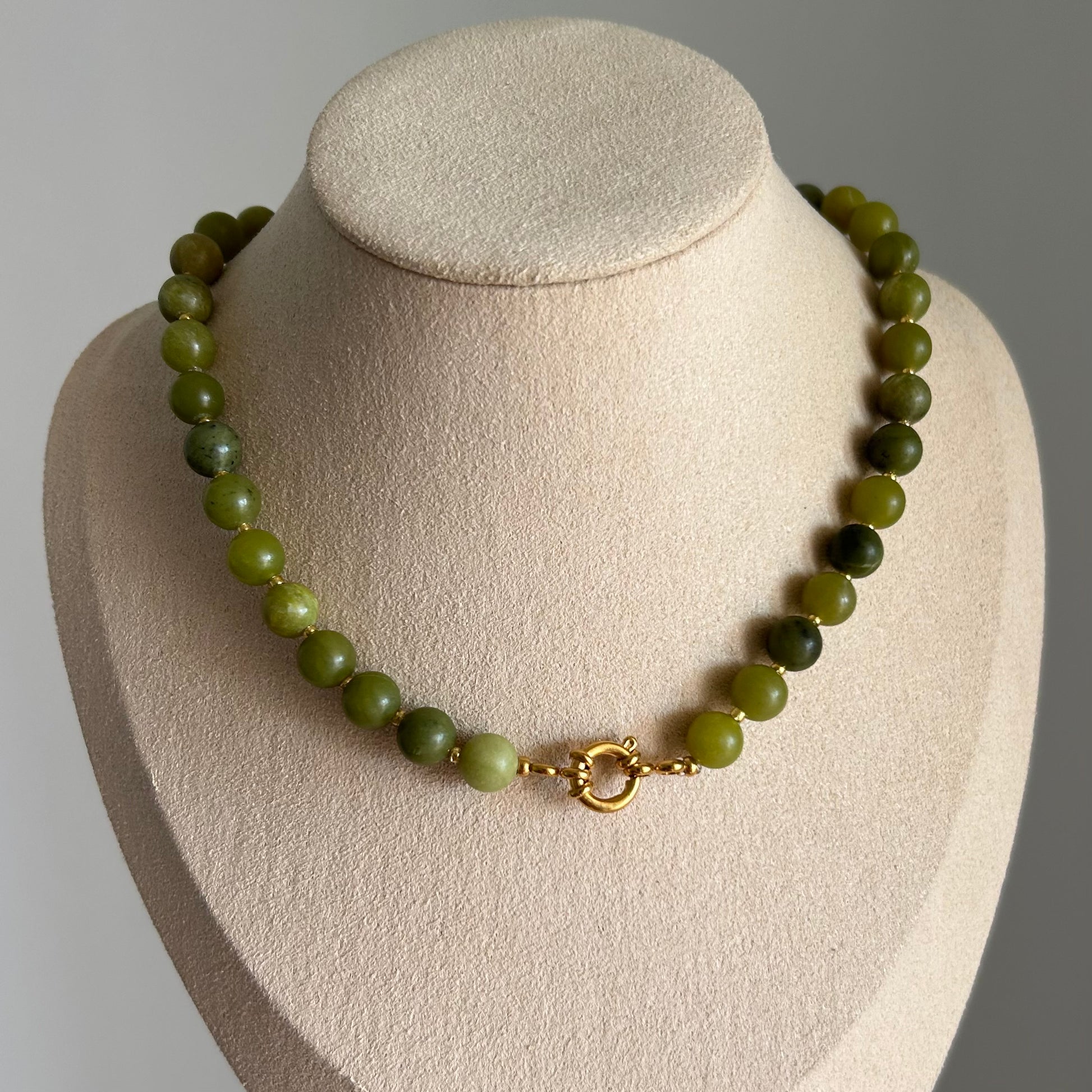 Laissez-vous séduire par la beauté naturelle de la serpentine, une pierre reconnue pour ses nuances de vert profond et son énergie apaisante. Ce collier apporte une touche d’élégance simple et authentique, parfaite pour accompagner vos tenues du quotidien comme vos looks plus habillés.
