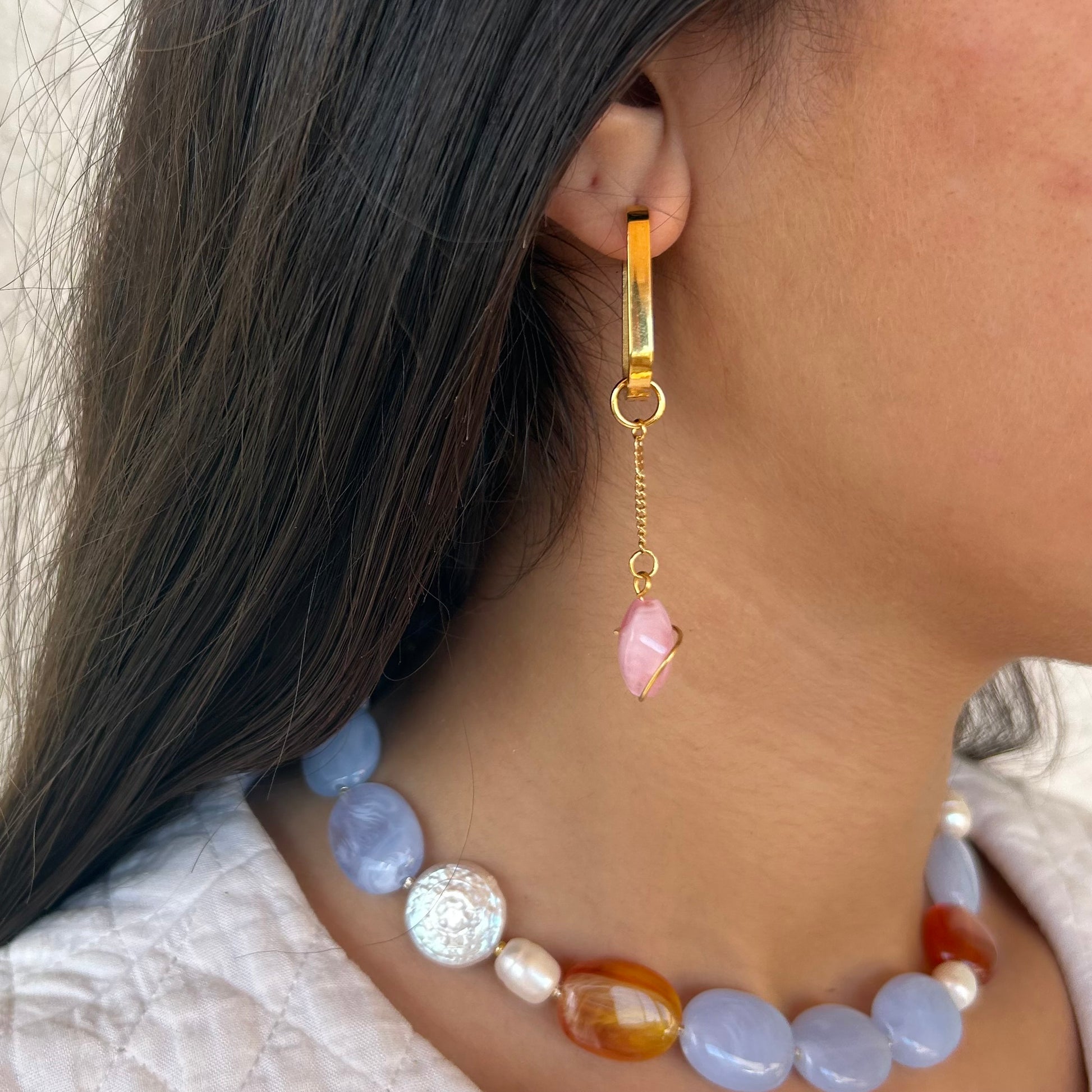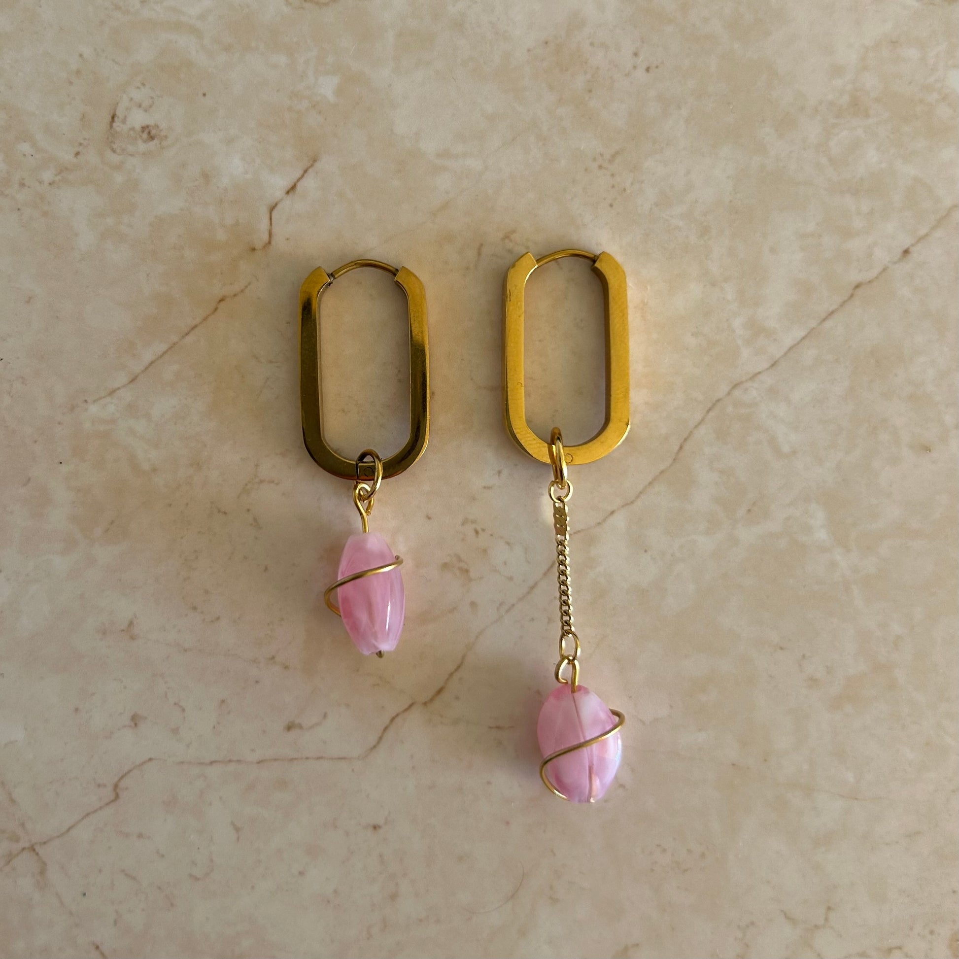 Portez ces boucles asymétriques faites à la main pour un look unique et original. La chaîne plus longue ajoute un effet asymétrique qui met l'audace à l'avant-plan. Modèle unique, elles ne reviendront pas = un seul exemplaire en stock
