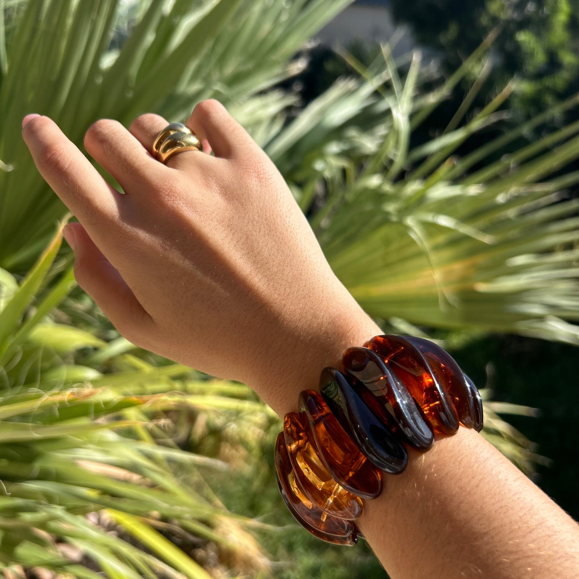 Bracelet effet jonc, en perles de résine. Bracelet élastique disponible en deux coloris.